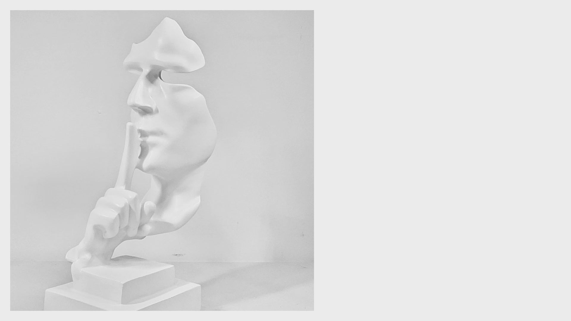 White Abstract Silence is Golden Silence Face Thinker Statue, Polyresin Artwork for Home or Office 12 inch 31 cm