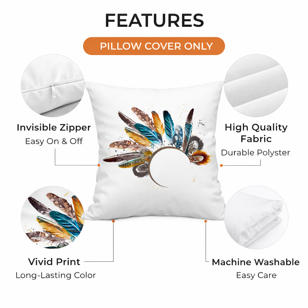 Modern Minimalist Square Cushion Cover, 17 x 17 Inch Feather Design Farmhouse Bohemian Decorative Pillowcase for Living Room Bedroom