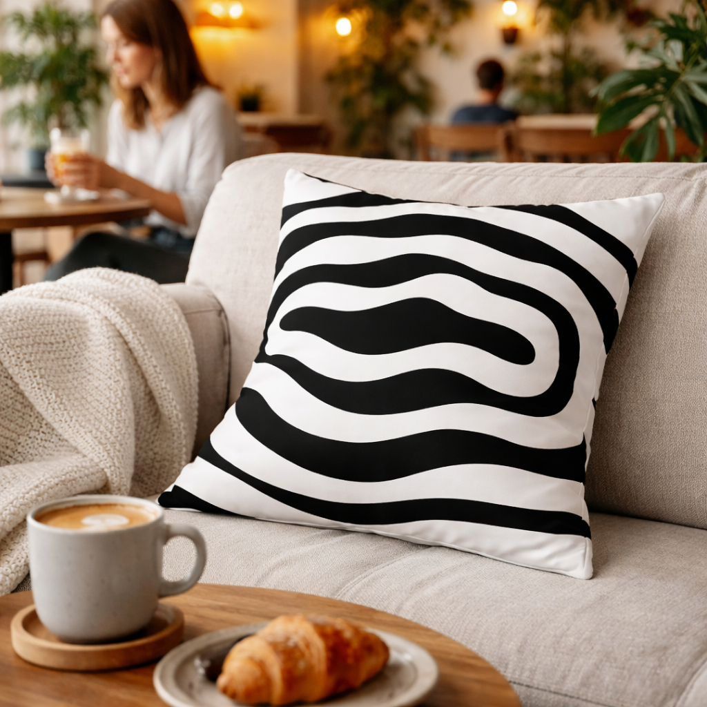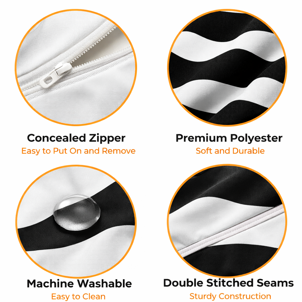 Modern Minimalist Square Cushion Cover, 17 x 17 Inch Black White Contemporary Decorative Pillowcase for Living Room Bedroom