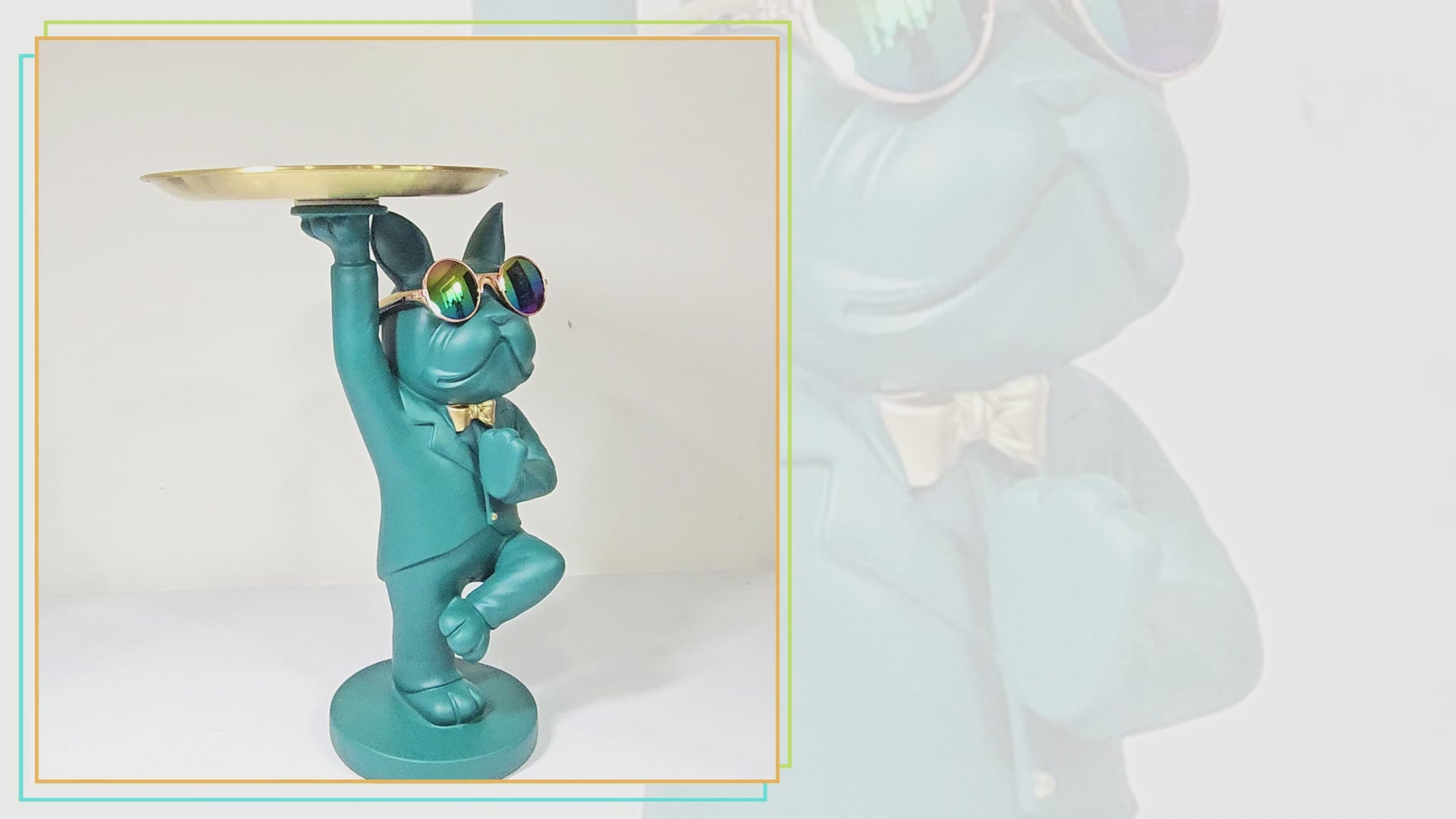 Ready to get organized? This Cool Dog Storage Organizer is here to lend a paw! With its laid-back hippie dog design, complete with cool sunglasses, this polyresin dog statue combines cuteness with functionality. The dog sculpture features a metal tray perfect for organizing small items like keys, accessories, coins, and toys. With its stable base, you can trust that the 12 inch (31 cm) organizer tray won't tip over, even when filled. The unique blue color of the dog statuary adds a pop of color to your space; a relaxing color that's pleasing to the eyes. Not only is this pug table organizer cute, but it's also a practical decorative accent that can be used as a nifty makeup organizer, jewelry organizer, skincare organizer, or cosmetic organizer. It's also a great housewarming gift or present for kids and teens, teaching them the importance of staying organized in a fun way.