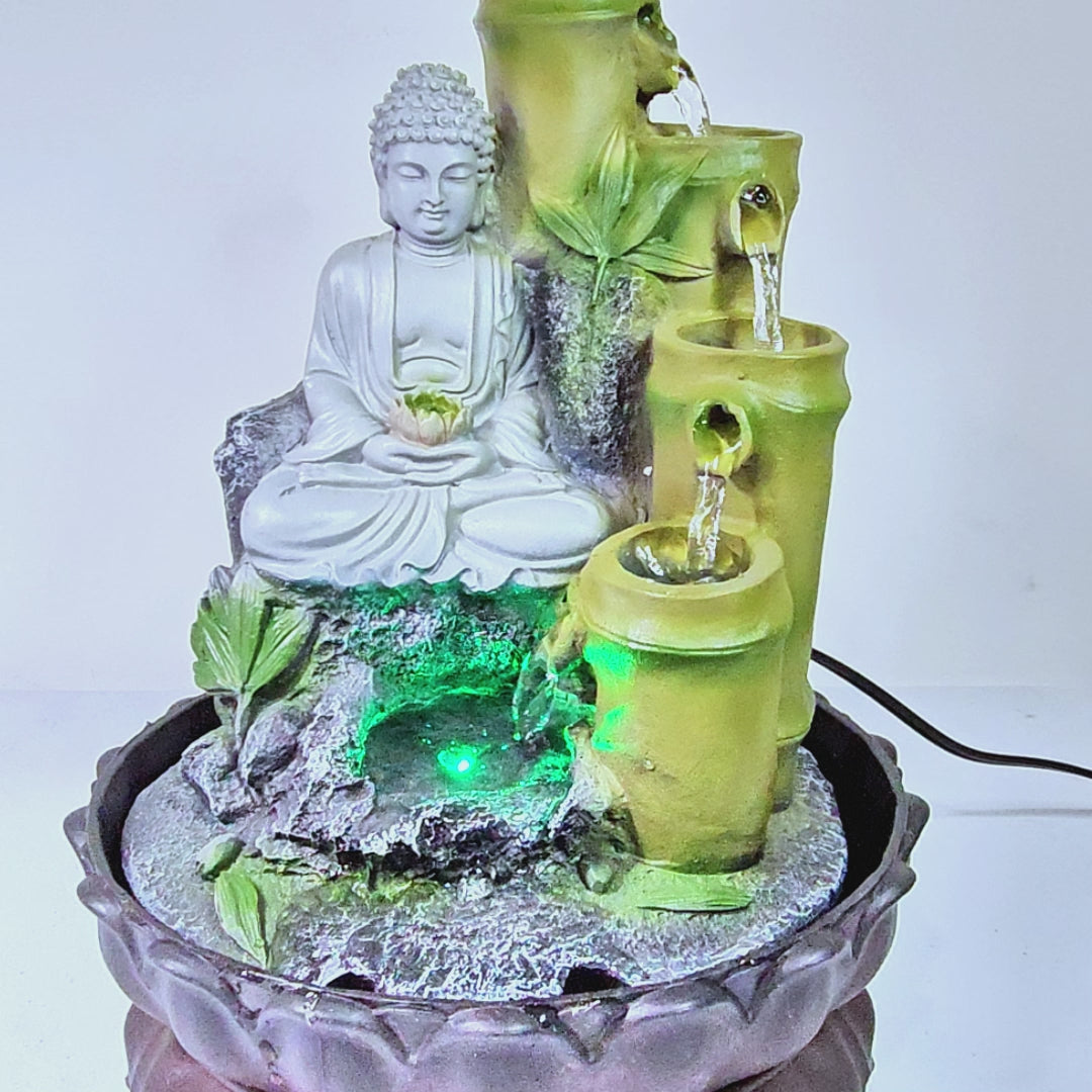 Indoor Waterfall with Buddha Statue, Pump, Light Polyresin 11 inch 28 cm