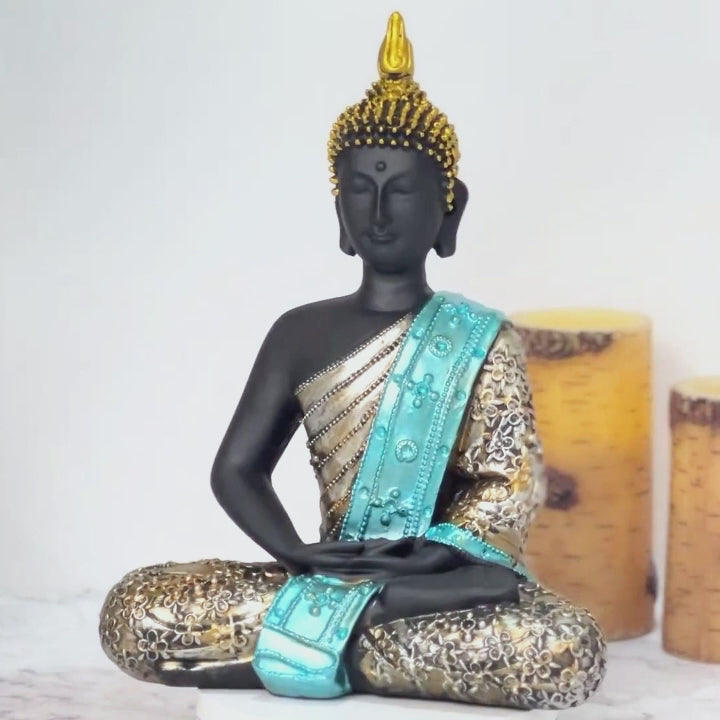 Upgrade the zen of your space with our black and gold small Buddha statue. This handmade ornament is an ideal decorative sculpture for your home or office, bringing zen and spiritual energy to your home or office. Perfect for a minimalist table, desk, or shelf, it serves as a serene reminder to slow down. Versatile and stylish, it can be used as a meditation, yoga, or feng shui decor. Place it in your living room, temple, altar, or meditation area to enhance positive vibes. This decorative Buddhist figurine also makes a thoughtful handmade gift for anyone who values spiritual and meaningful decoration or collectibles.