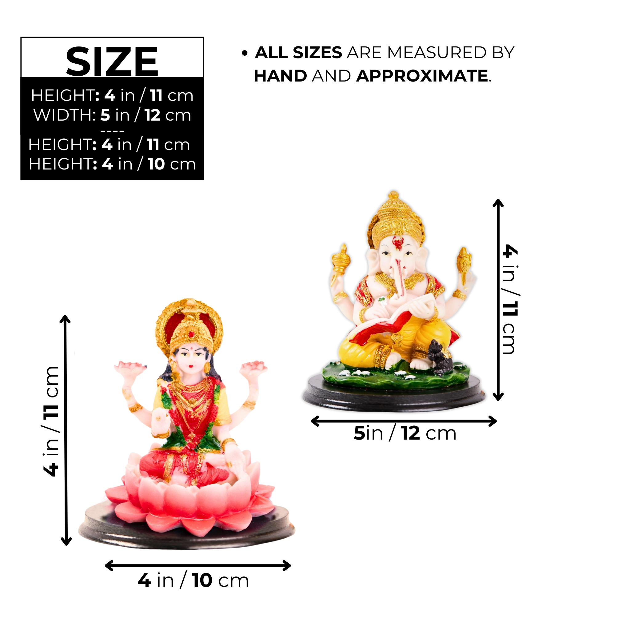 Multicolor Mini Ganesh Lakshmi Idols, 4" Indian Hindu God Statues For Home