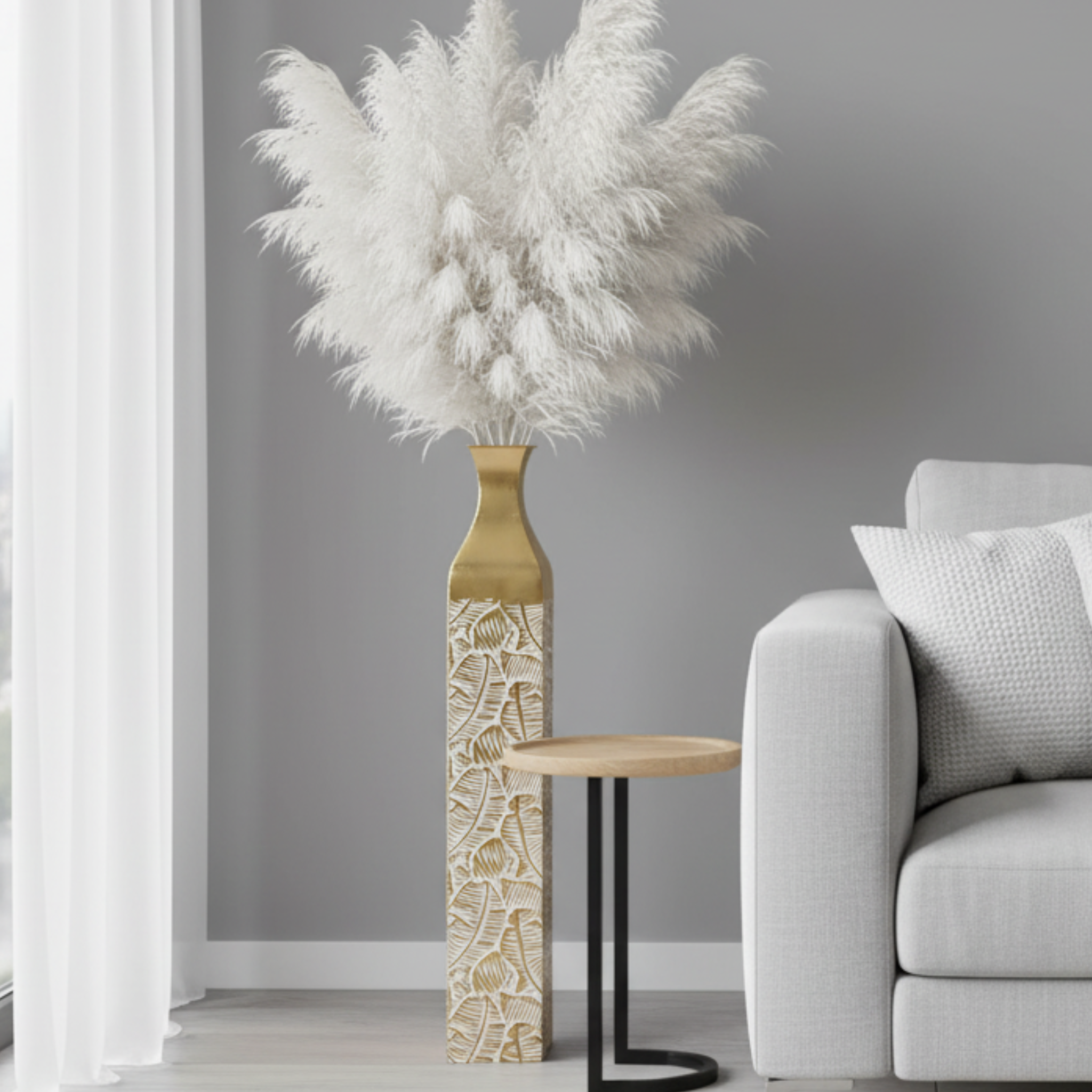 We all want our living spaces to feel warm and fancy at the same time. That's where this Gold Tall Vase for Living Room comes in handy! This rustic weathered finish handmade large gold floor vase is super stylish and easy to use, made of metal, and has a standout pattern. This big 36 inches tall vase can be filled up with your favorite flowers or branches, or leave it empty for a classy minimalist touch. This gold metal flower vase is built to last, so you can enjoy it for a long time. A great addition to any room - from traditional to modern, farmhouse to boho chic. This metal flower vase is great as foyer decor, decor for entryway, or centerpieces for your entrance way ideas and floral arrangements ideas.