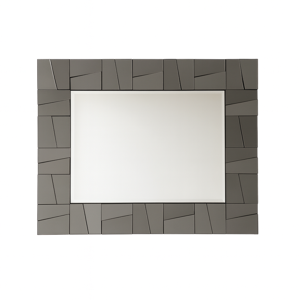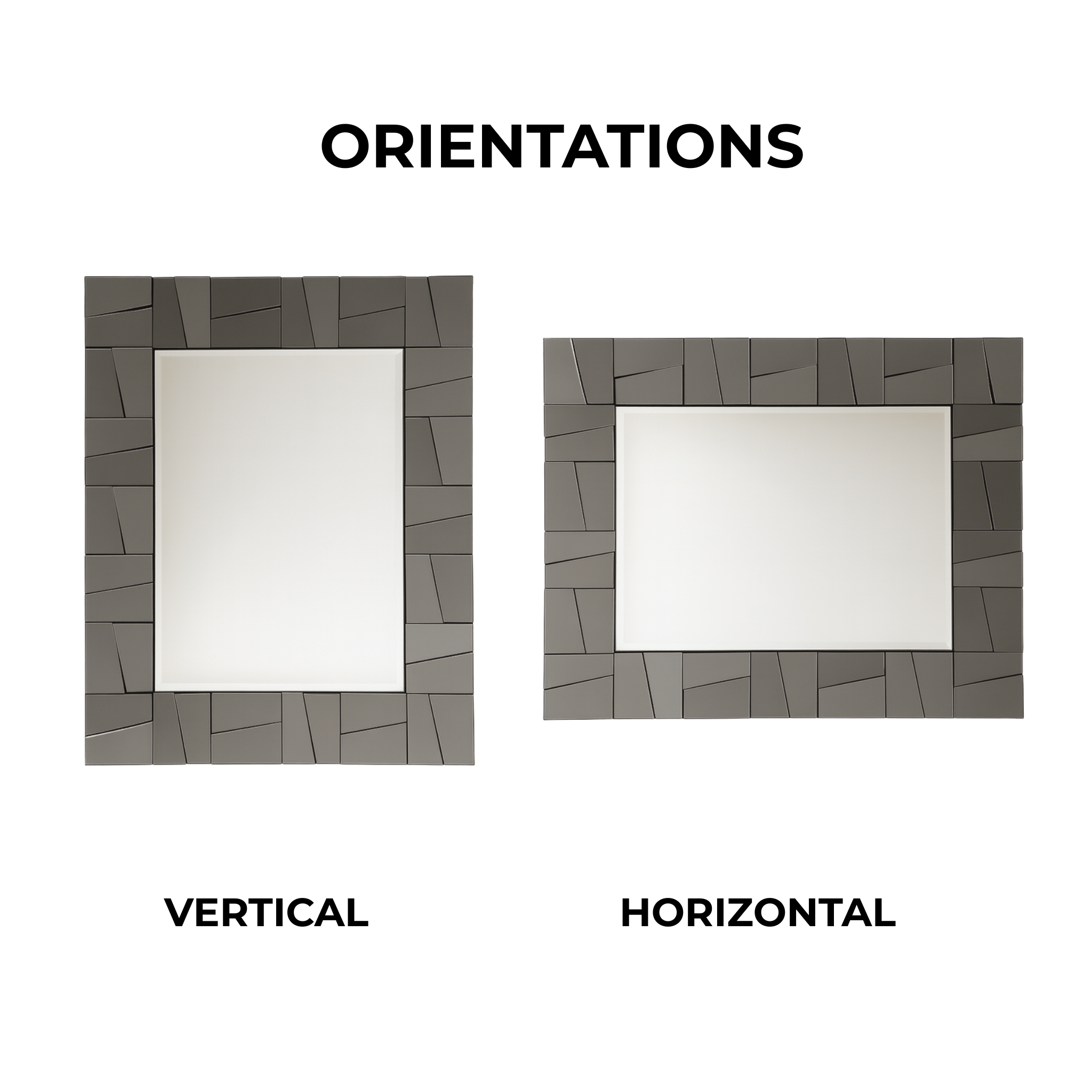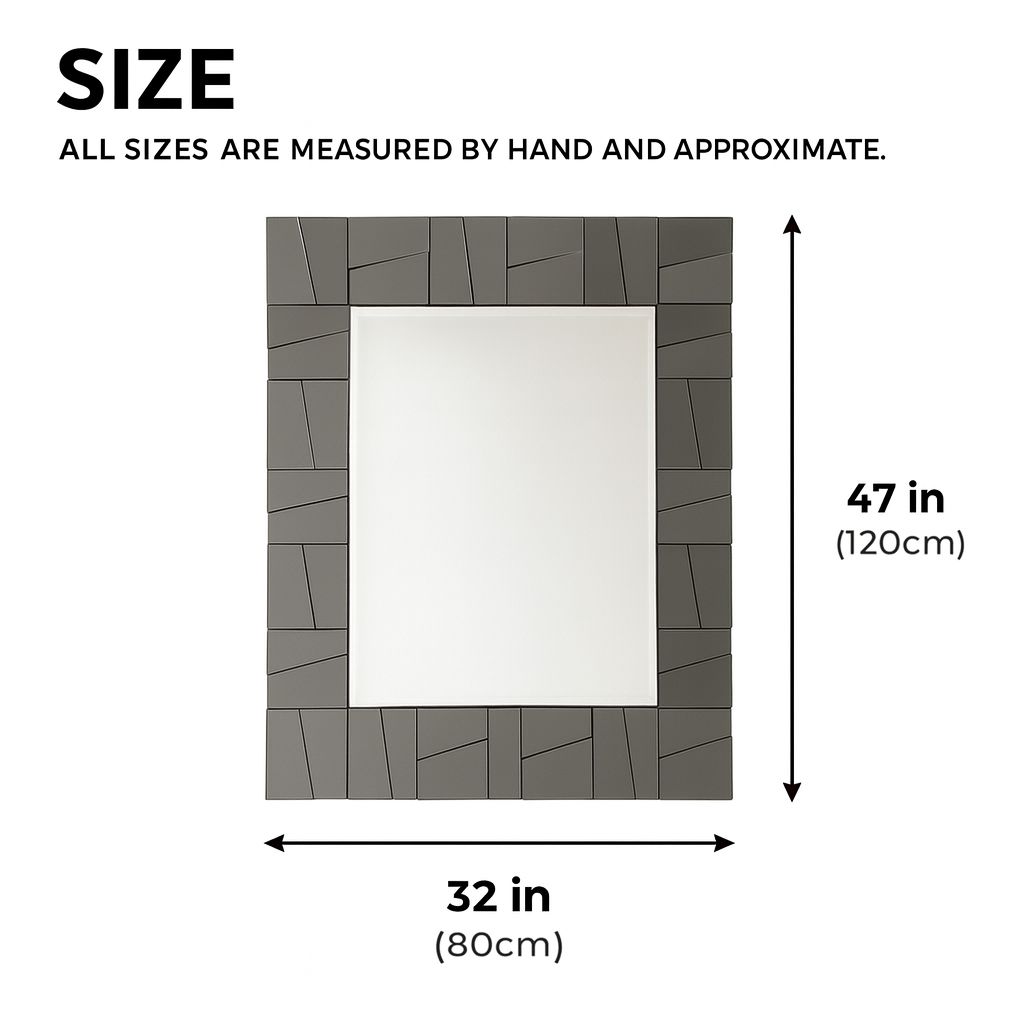 Extra Large 4 ft Grey Glass Mirror, Modern Block Design, Easy to Install Horizontal Vertical Orientation