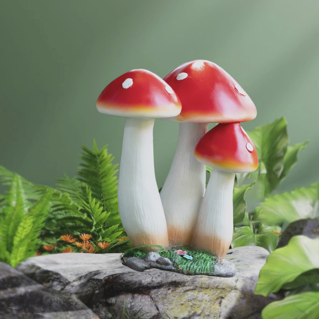 Large Outdoor Decor, Mushroom Sculpture, Red Polyresin 15 inch 39 cm