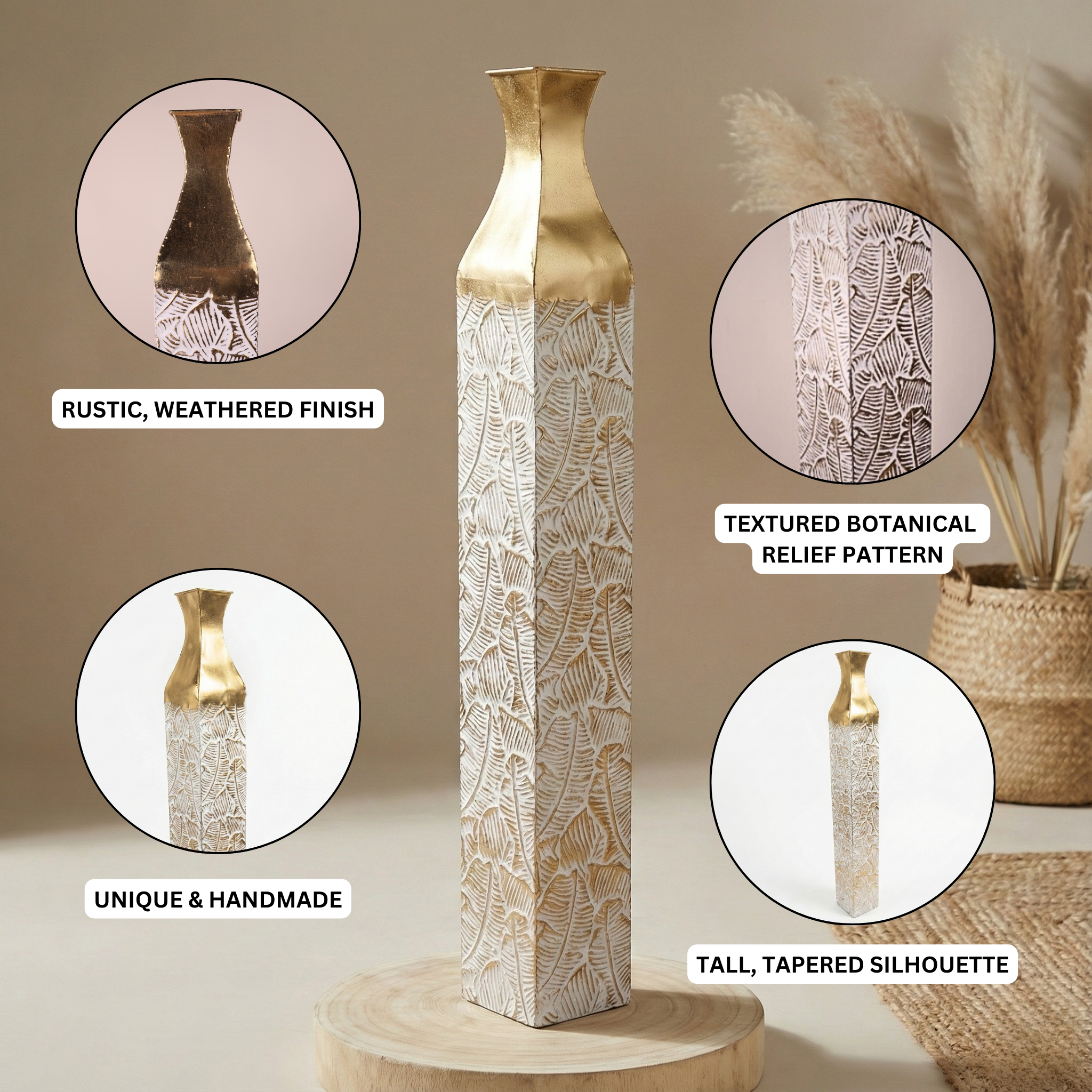 • HANDMADE WITH RUSTIC, WEATHERED FINISH: Finished in weathered gold, every rustic floor vase can match any interior style from traditional to modern.