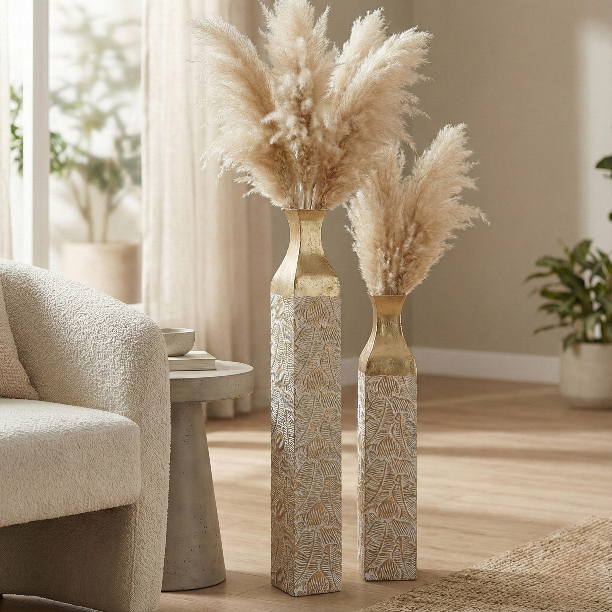 • SET OF 2: Includes two elegantly sized vases – one 42 inch large and one 35 inch medium. Buy this set for a coordinated look in your home or office.