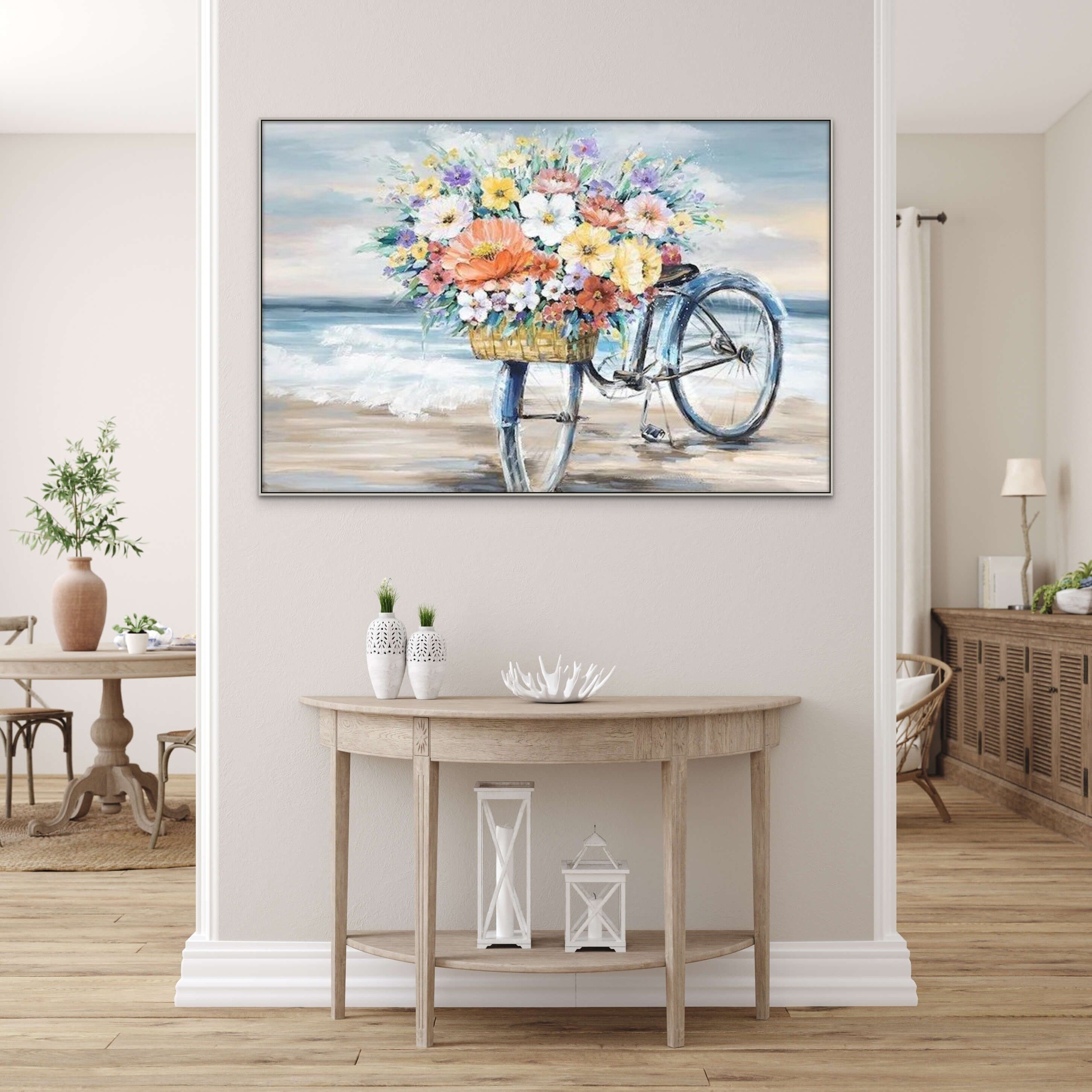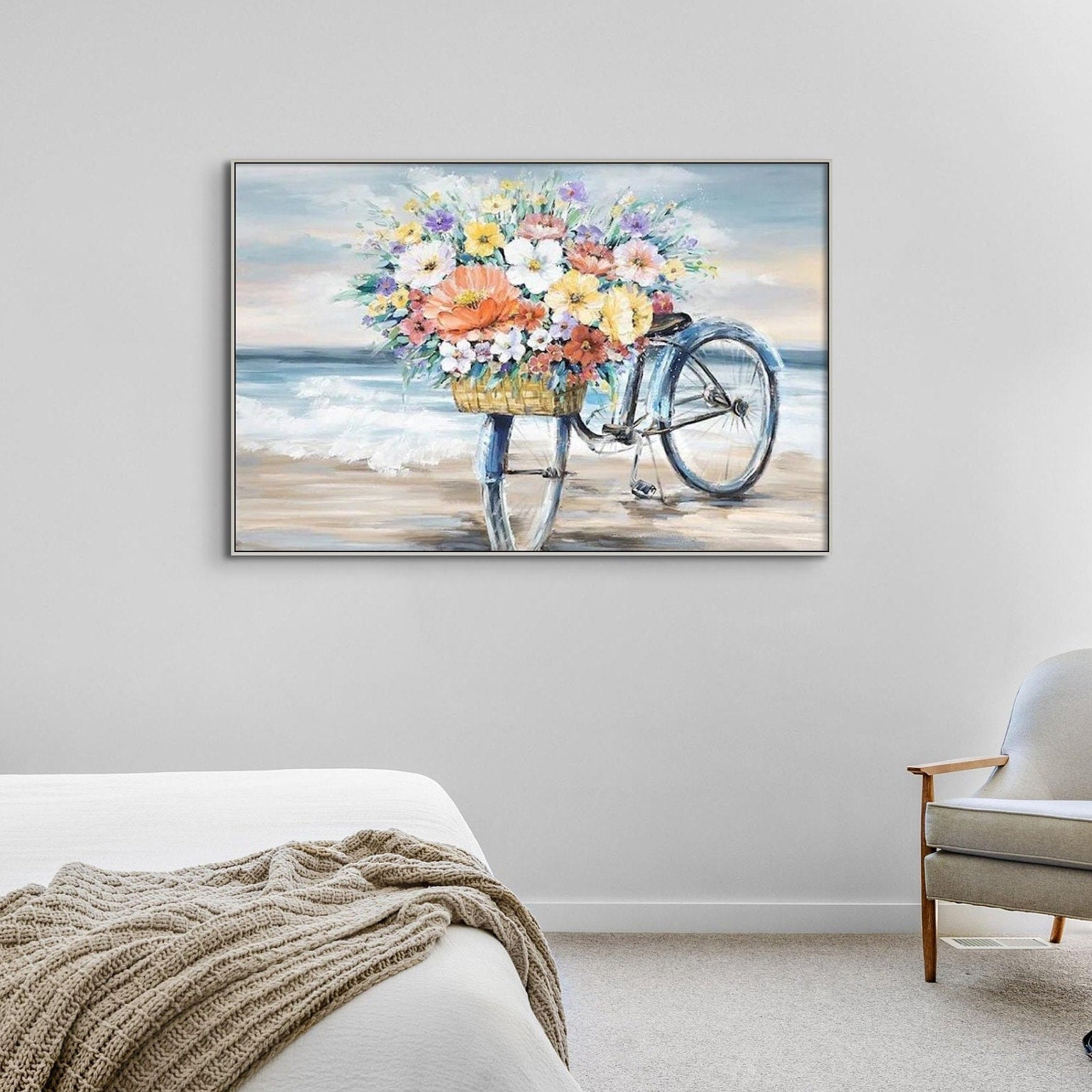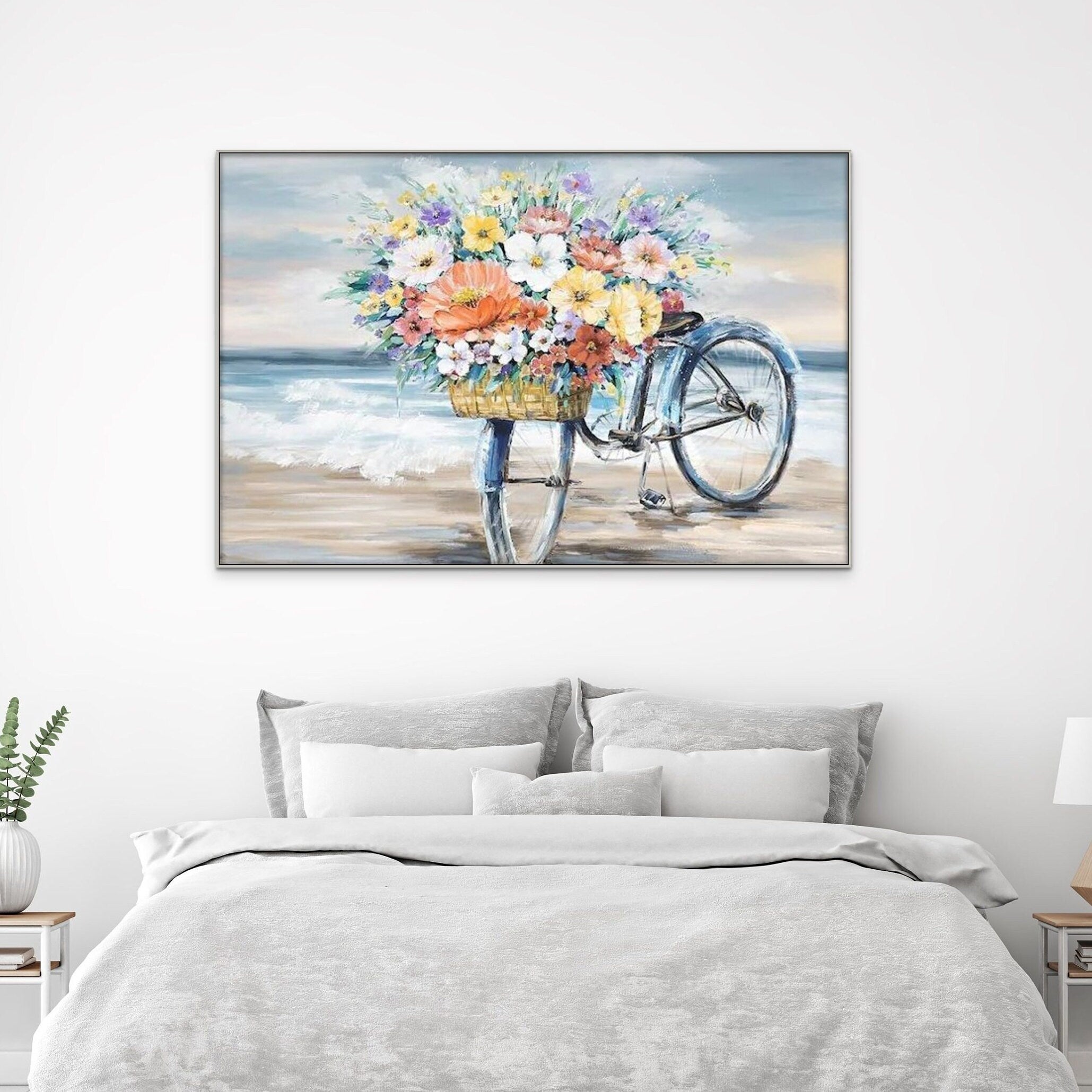 The textured details of the petals and leaves add depth and dimension, offering a tactile experience that sets this floral wall art apart. Whether you're looking to add a touch of minimalist elegance or boho charm, this versatile piece seamlessly blends with any decor style. Don't miss the opportunity to own this captivating piece of flowers painting that celebrates the splendor of spring.