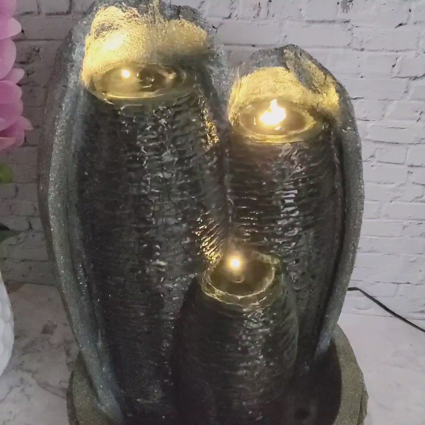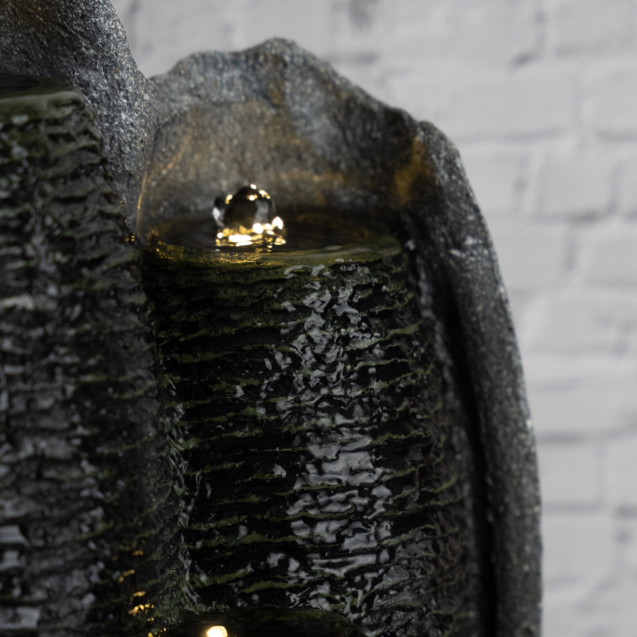 Majestic Oasis Mini Waterfall Fountain - Indoor Gray Stone Finish, LED Lights, Fiberglass & Polyresin, Perfect for Tabletop, Entryway, or Therapy Office Decor