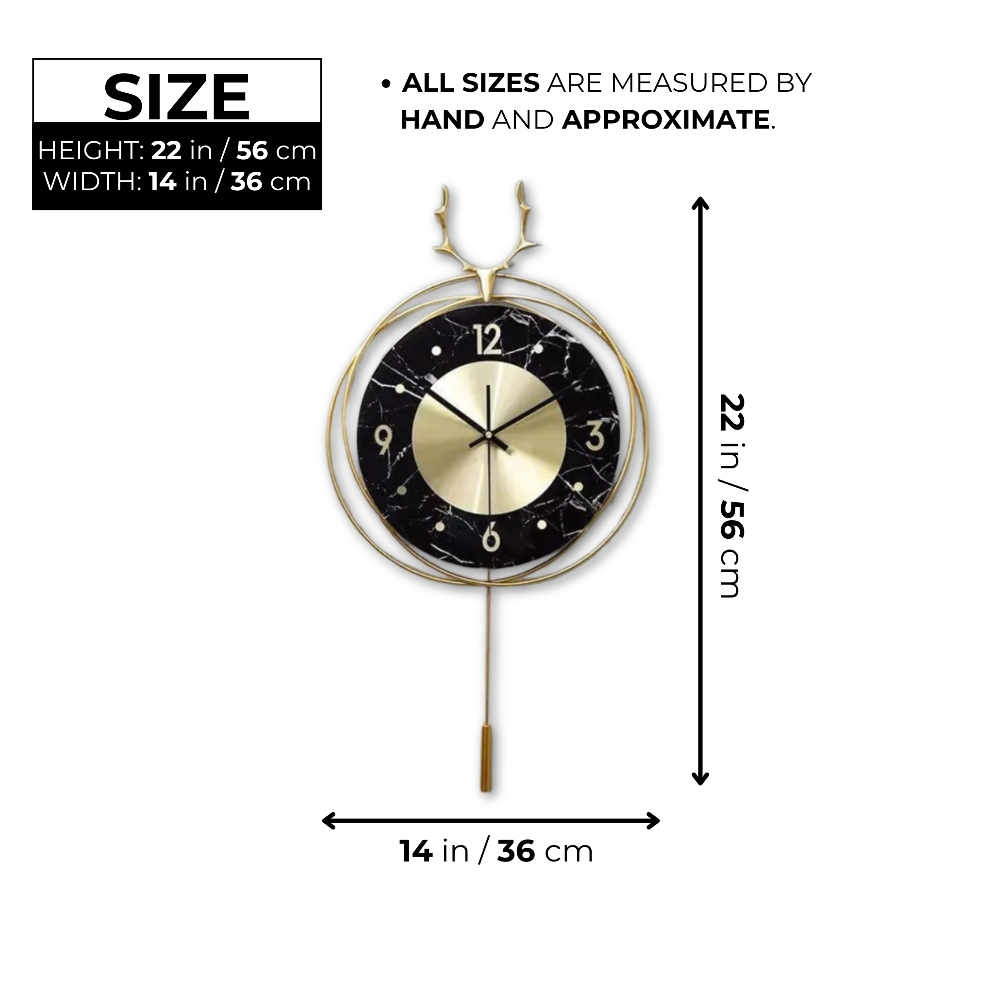 Make a bold statement with this extra large 22 inch designer wall clock, combining modern elegance with timeless style. The Vertical Gold and Black Silent Pendulum Clock is a stunning piece of wall decor that effortlessly elevates any living room, home office, or bedroom with its elegant modern abstract design and metallic finish. Perfect as a housewarming gift or for refreshing your space with a touch of farmhouse meets modern chic.